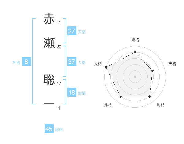 赤瀬 聡一さんを姓名の画数から五運を鑑定