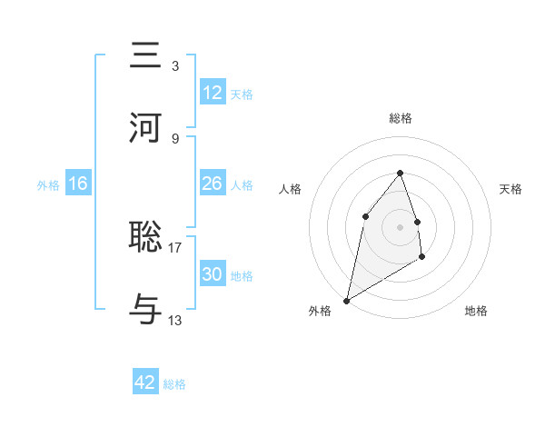 三河 聡与さんの外格は16画の5点!