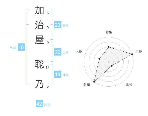 加治屋 聡乃さんの天格は23画の5点