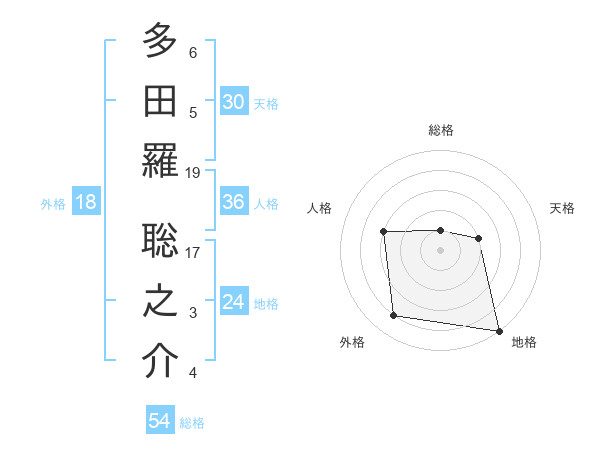 多田羅 聡之介さんの総格は54画の1点!