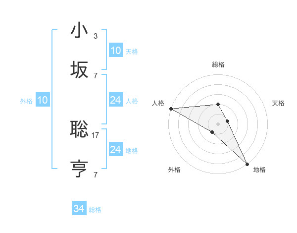 小坂 聡亨さんの総格は34画の2点!