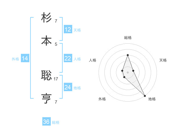 杉本 聡亨さんの地格は24画の5点!