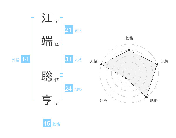 江端 聡亨さんの天格は21画の5点!