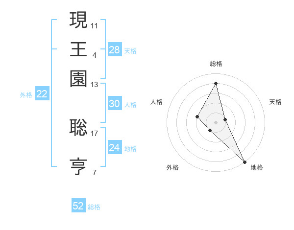 現王園 聡亨さんを姓名の画数から五運を鑑定