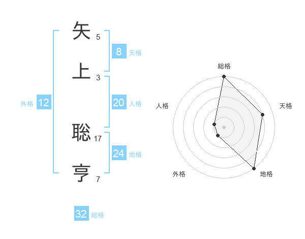 矢上 聡亨さんの総格は32画の5点!