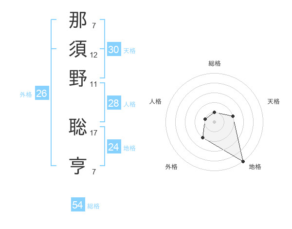 那須野 聡亨さんを姓名の画数から五運を鑑定