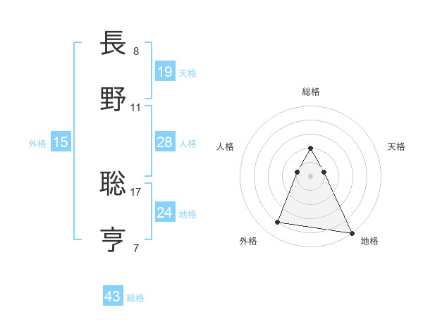 長野 聡亨さんの総格は43画の2点!