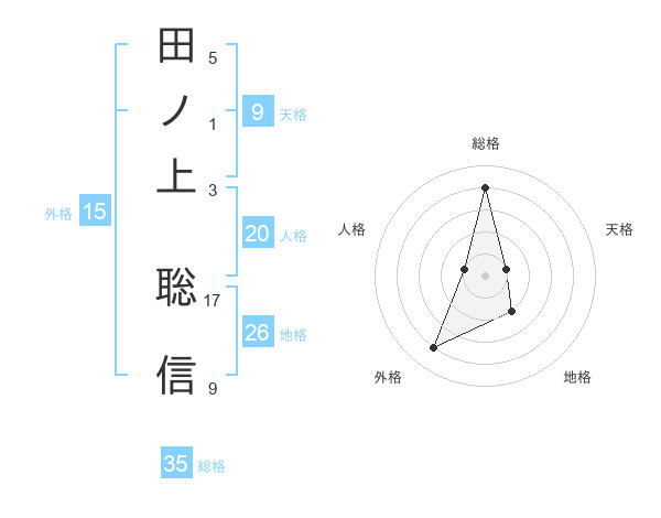 田ノ上 聡信さんを姓名の画数から五運を鑑定