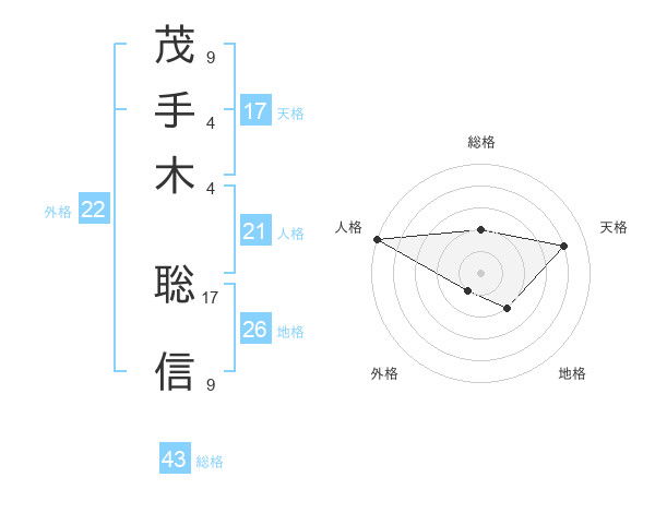 茂手木 聡信さんの天格は17画の4点!