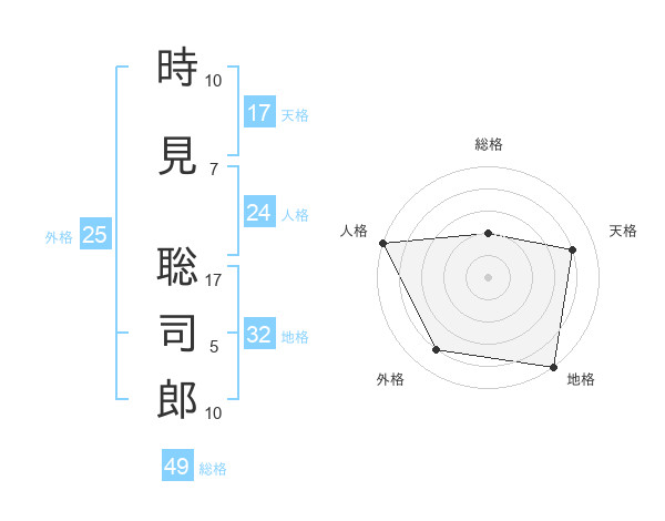 時見 聡司郎さんを姓名の画数から五運を鑑定