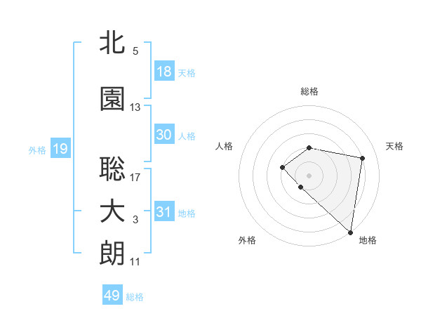 北園 聡大朗さんを姓名の画数から五運を鑑定