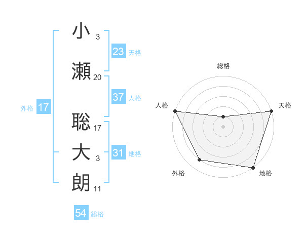 小瀬 聡大朗さんを姓名の画数から五運を鑑定