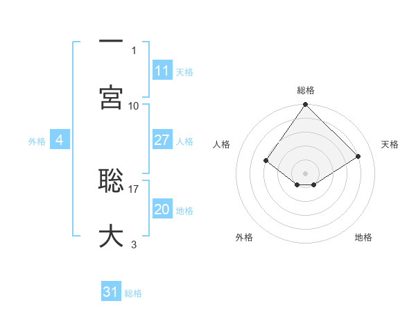 一宮 聡大さんを姓名の画数から五運を鑑定