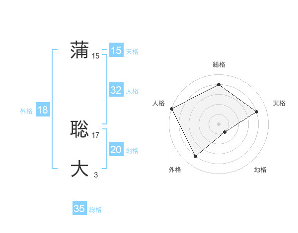 蒲 聡大さんの地格は20画の1点!