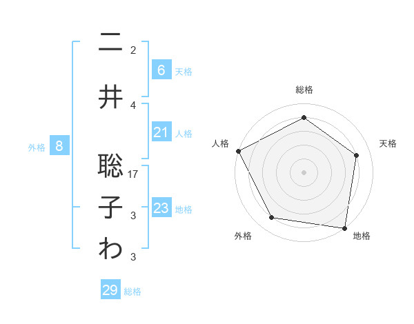 二井 聡子わさんの総格は29画の4点!