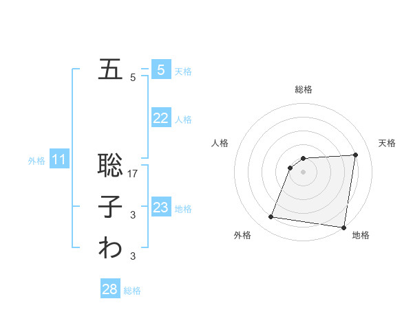 五 聡子わさんの地格は23画の5点!