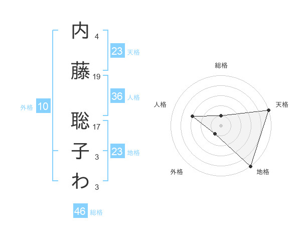 内藤 聡子わさんの天格は23画の5点!