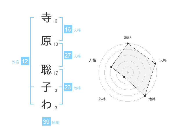 寺原 聡子わさんの天格は16画の5点!