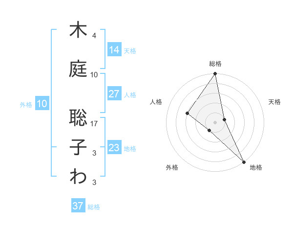木庭 聡子わさんの総格は37画の5点!