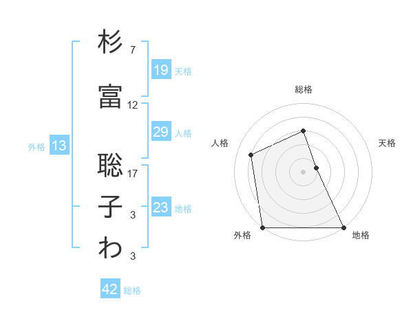 杉富 聡子わさんを姓名の画数から五運を鑑定