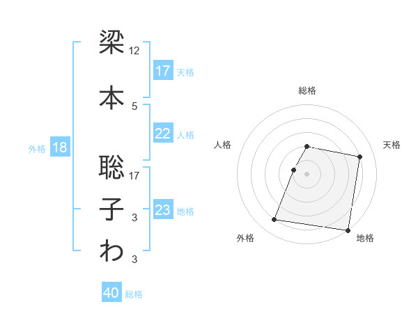 梁本 聡子わさんを姓名の画数から五運を鑑定