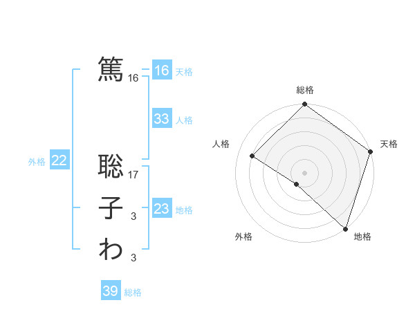 篤 聡子わさんの総格は39画の5点!