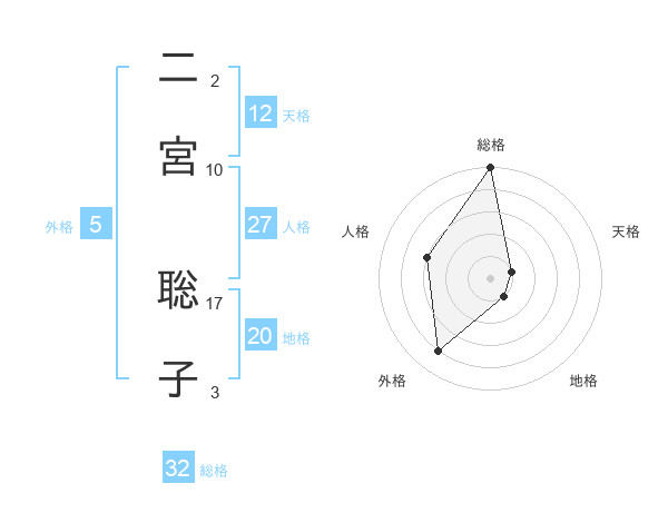 二宮 聡子さんの総格は32画の5点!