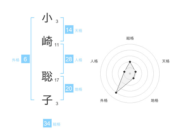 小崎 聡子さんの総格は34画の2点!