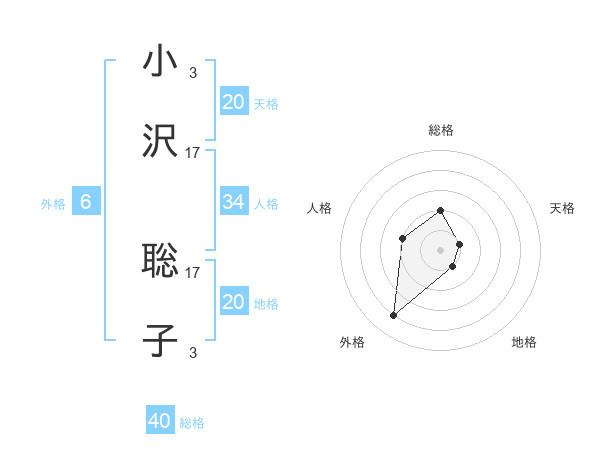 小沢 聡子さんの天格は20画の1点!