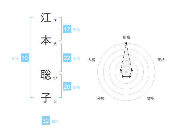 江本 聡子さんの総格は32画の5点!