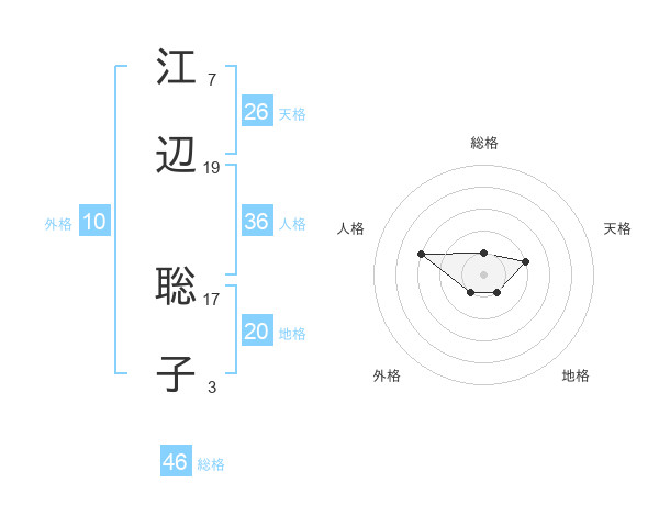 江辺 聡子さんの総格は46画の1点!