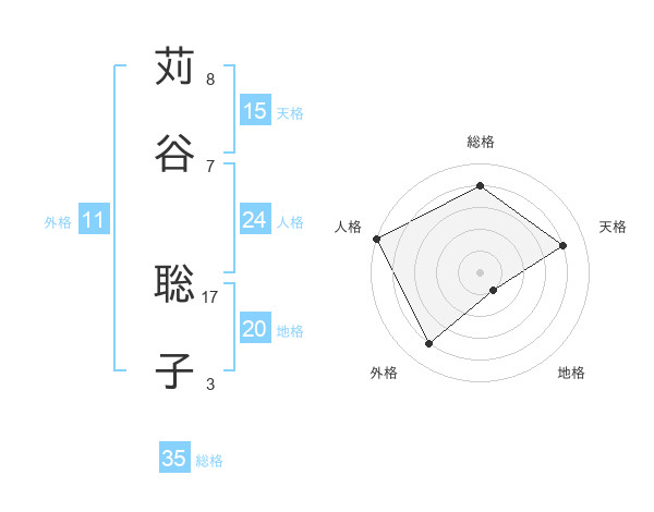苅谷 聡子さんを姓名の画数から五運を鑑定