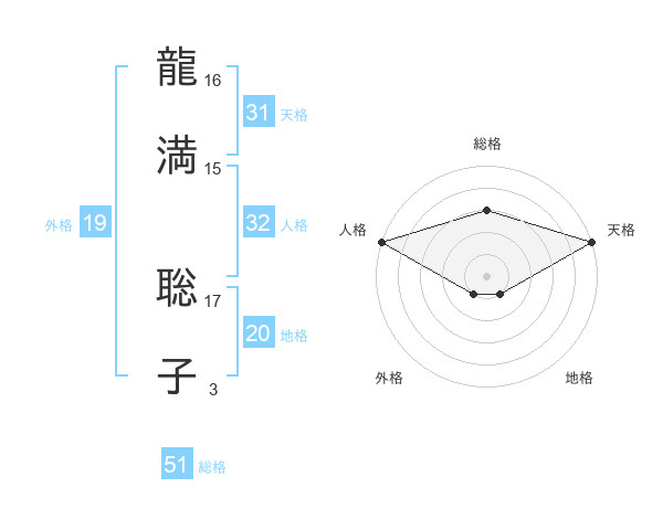 龍満 聡子さんの総格は51画の3点!