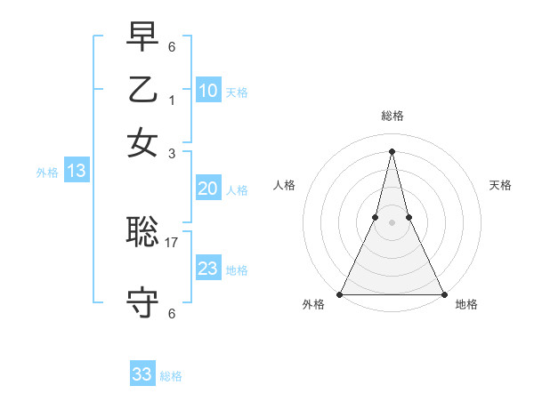 早乙女 聡守さんの総格は33画の4点!
