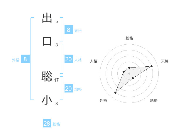 出口 聡小さんの総格は28画の1点!