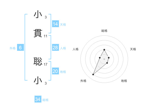 小貫 聡小さんを姓名の画数から五運を鑑定