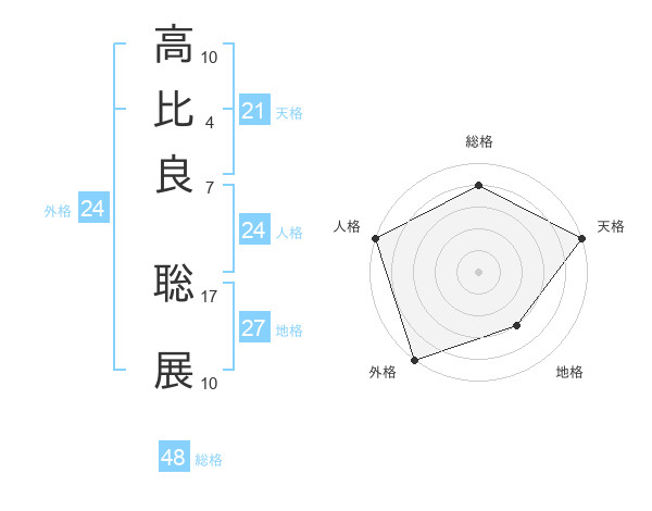 高比良 聡展さんの天格は21画の5点!