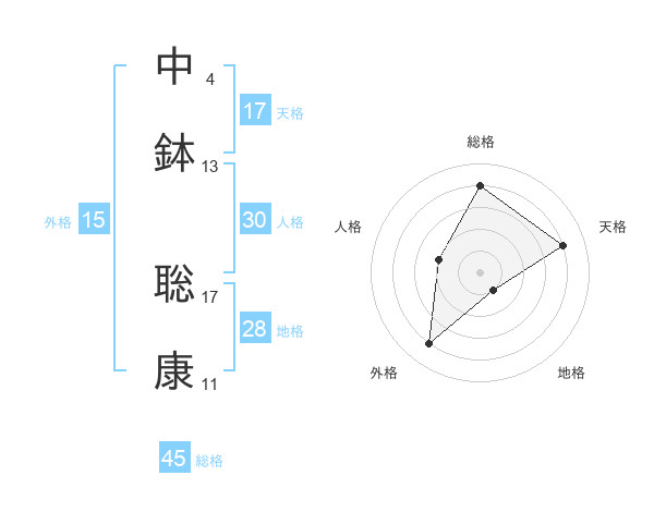 中鉢 聡康さんの天格は17画の4点!