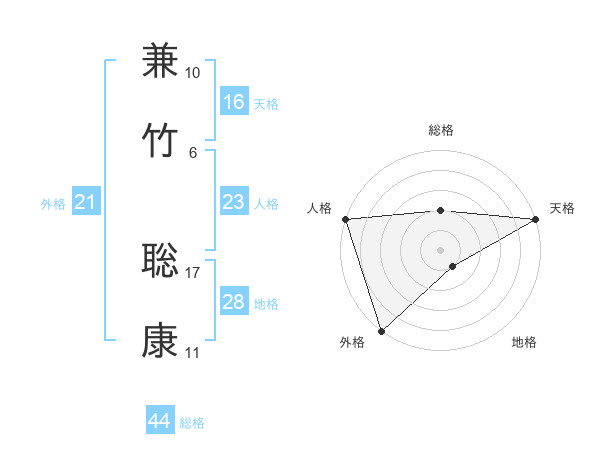 兼竹 聡康さんを姓名の画数から五運を鑑定