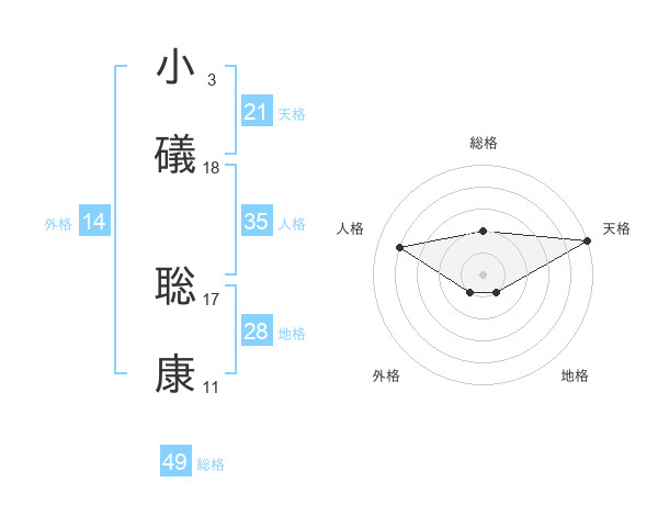 小礒 聡康さんの天格は21画の5点!