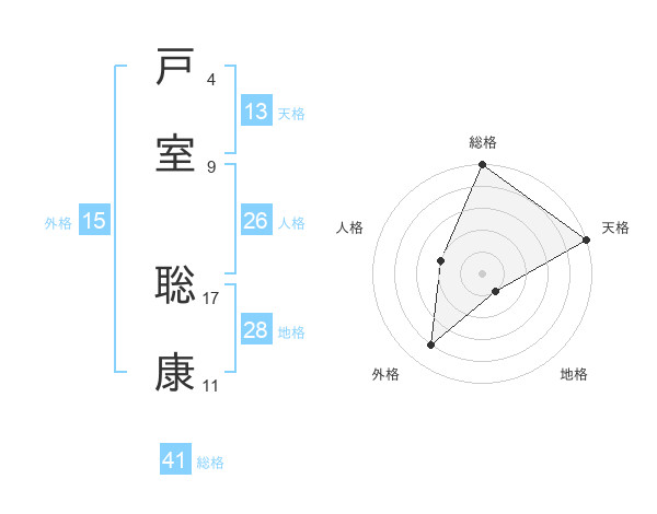 戸室 聡康さんの総格は41画の5点!