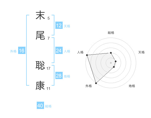 末尾 聡康さんの人格は24画の5点!