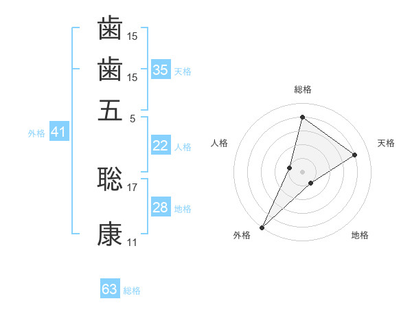 歯歯五 聡康さんの天格は35画の4点!