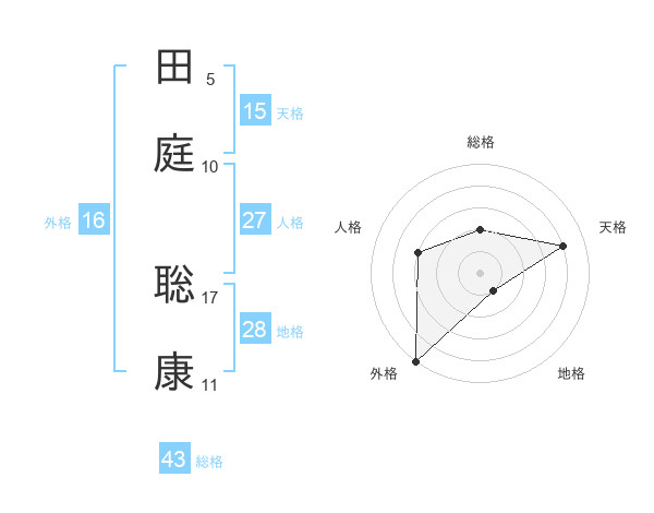 田庭 聡康さんの総格は43画の2点!