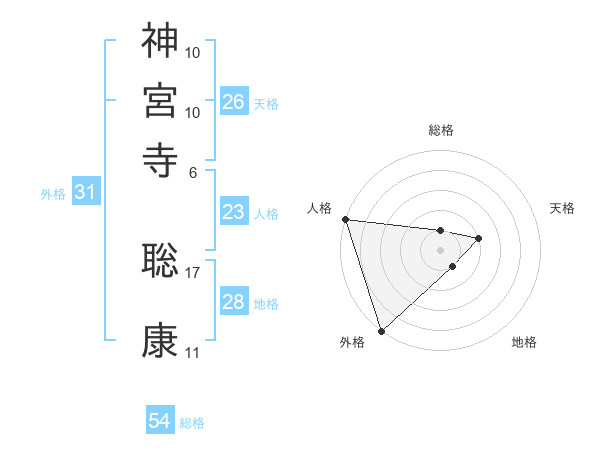 神宮寺 聡康さんを姓名の画数から五運を鑑定