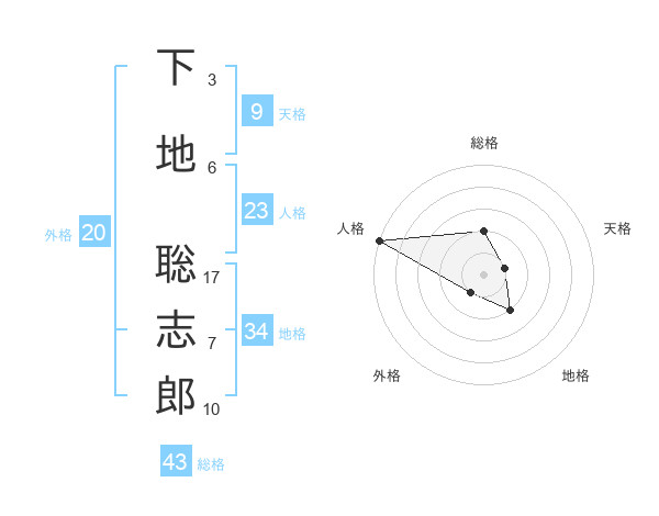 下地 聡志郎さんの総格は43画の2点!