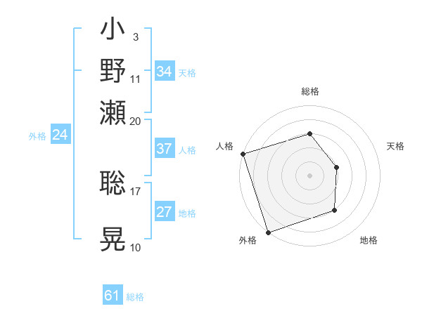 小野瀬 聡晃さんを姓名の画数から五運を鑑定