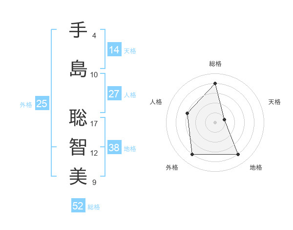 手島 聡智美さんの総格は52画の4点!