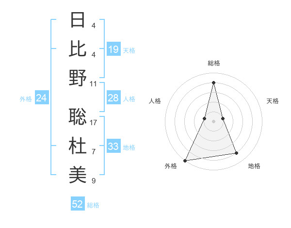 日比野 聡杜美さんの総格は52画の4点!