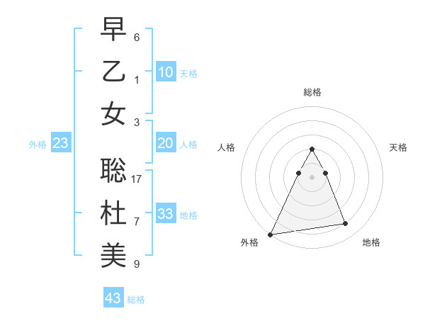 早乙女 聡杜美さんの総格は43画の2点!